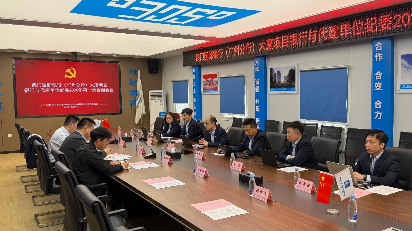 2026年1月29日下午,我行在澳门国际银行(广州分行)大厦项目现场召开银行与代建单位纪委2026年第一次会商会议。会议由境内机构党委副书记、纪委书记刘琳主持;广州分行行长游雄军、总行内部稽核部副总经理王东君等银行大厦项目工作组、项目专项检查小组、项目建设办公室和代建单位纪委、项目施工及监理单位相关人员出席会议。
