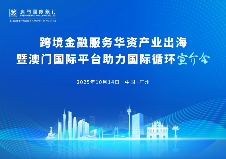 10月14日下午,“跨境金融服务华资产业出海暨澳门国际平台助力国际循环”宣介会在广州举行。本次宣介会旨在搭建政银企沟通桥梁,通过澳门及横琴投资政策及营商环境介绍、澳门国际银行产品、服务讲解等,帮助企业深入了解澳门投资环境与产业政策,充分共享澳门平台资源,为企业出海绘制清晰的“澳门+横琴”路线图。