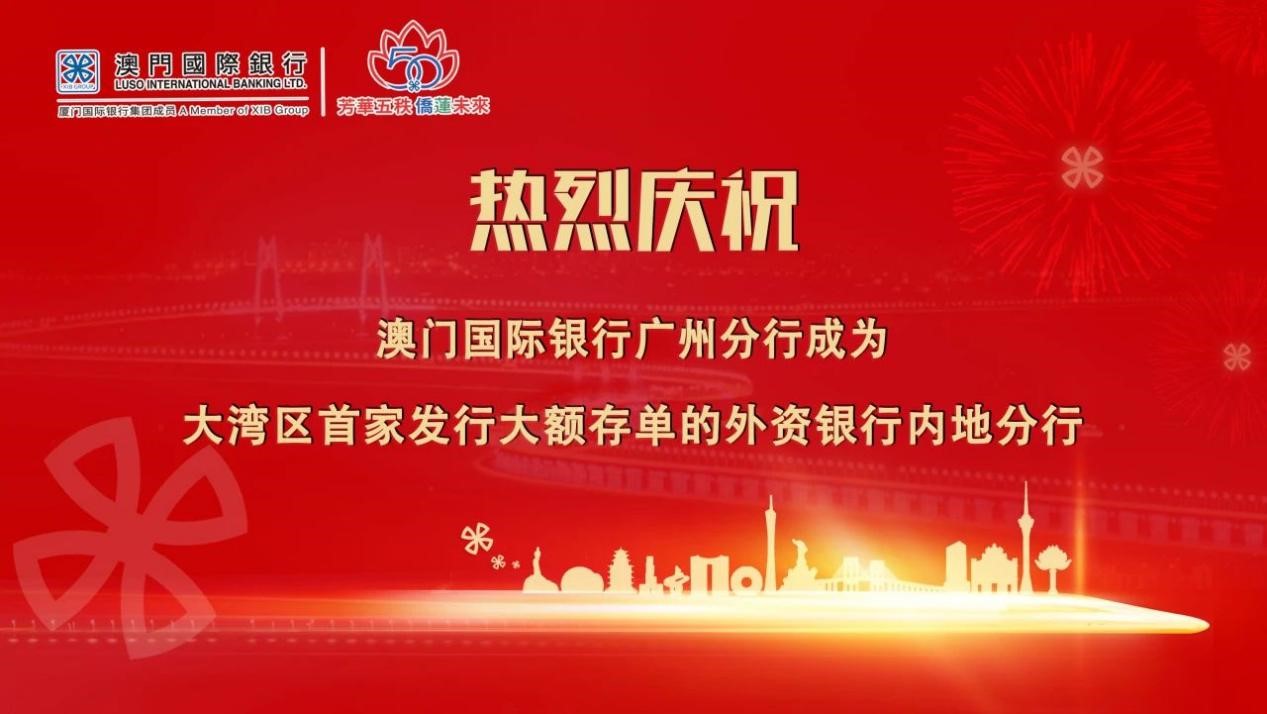 此次大額存單的發行,受到市場投資者踴躍認購,是澳門國際銀行廣州分行在主動負債產品端的一次創新突破。同時,在國家進一步擴大金融對外開放背景下,在澳門國際銀行成立50周年之際,本次大額存單發行進一步彰顯澳資銀行持續貫徹落實國家關於粵港澳大灣區建設政策的決心,是多元化參與大灣區金融市場的重要實踐,主動適應利率市場化改革的重大舉措。